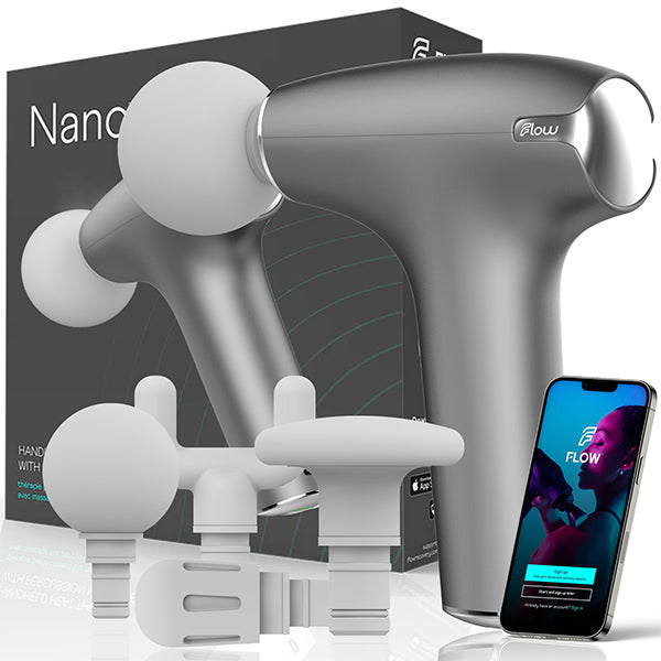 The Flow® NANO mini massage gun is the perfect device for regeneration and relaxation at home and on the go. Small, easy to handle but still extremely powerful, the Flow® NANO relaxes your muscles whenever and wherever you want. Whether in the gym, while traveling or on the couch.