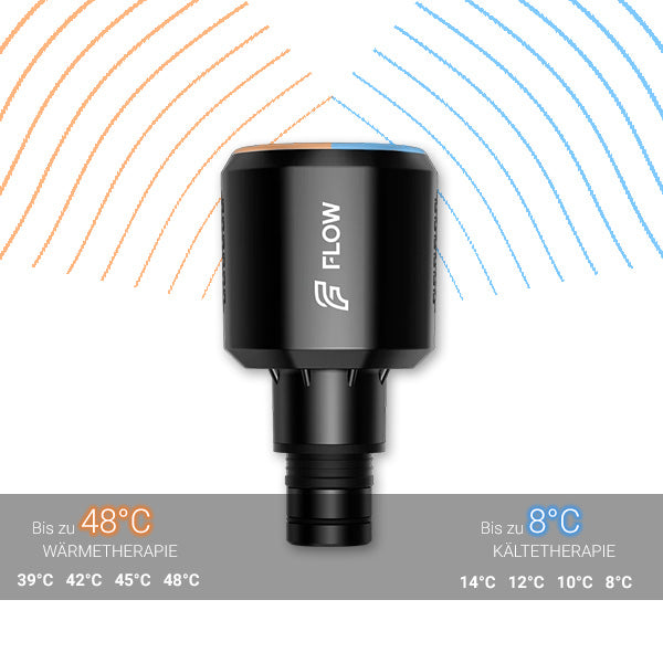 Mit dem QuantumFlow Aufsatz hat man eine neue Möglichkeit, die Massage mit Wärme oder Kälte zu verbinden.